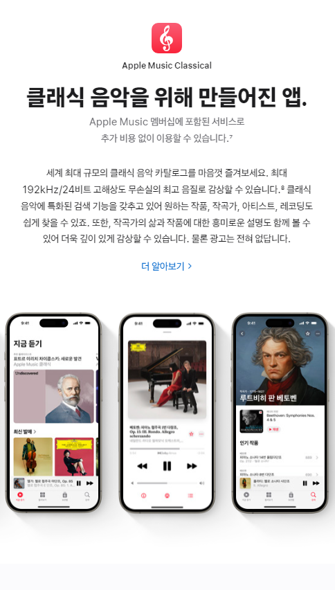 더 자세한 기능을 보시려면 아래 애플뮤직 공식 홈페이지를 참고하세요.