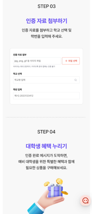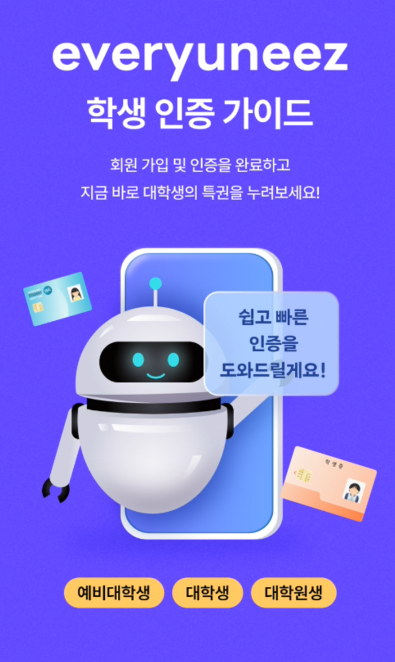 - 대학생 인증 절차는 평균 24시간 내 처리됩니다.(금요일 오후 신청 시 주말을 포함하여 최대 72시간 내)