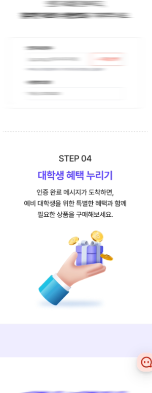- 사이트 우측 상단의 [마이페이지] → [내 정보 설정] → [대학생 인증] → [예비 대학생] 누르기