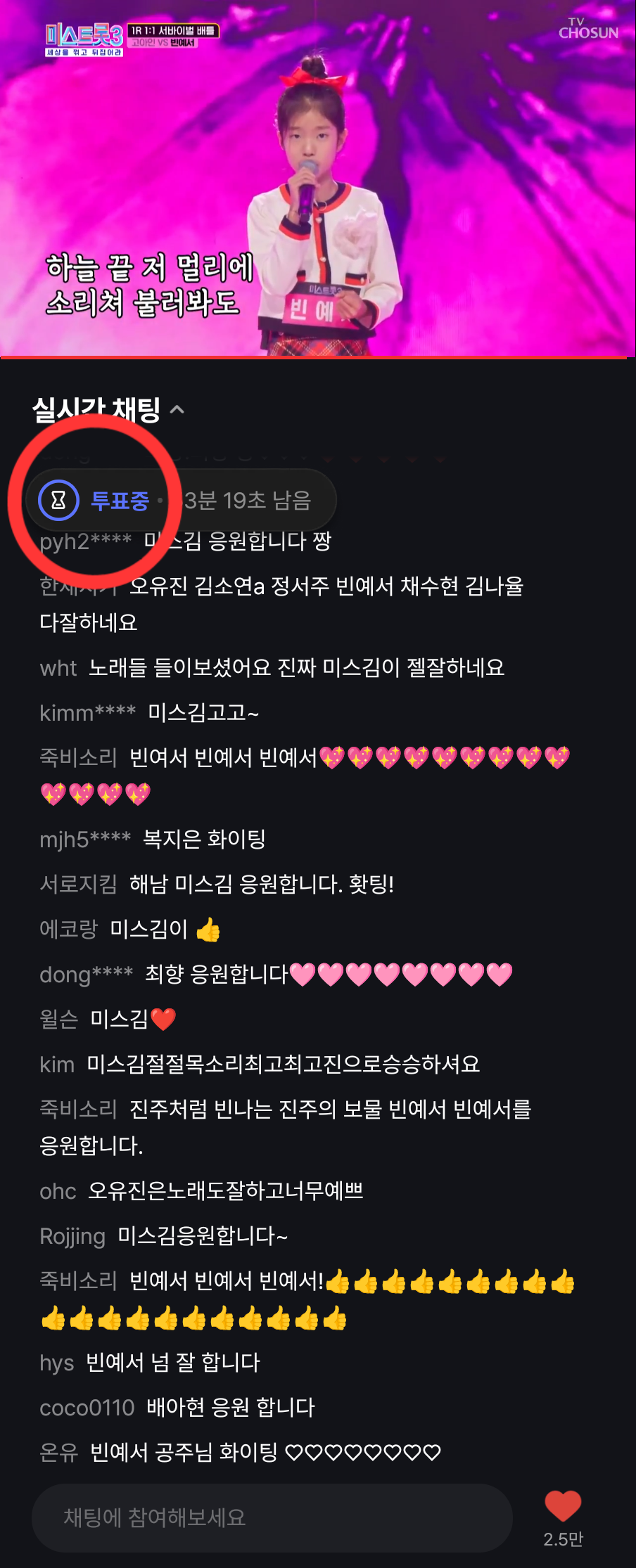 실시간 문자투표는 준결승과 결승전이 생방송으로 진행될 때만 가능한 투표 방식입니다.