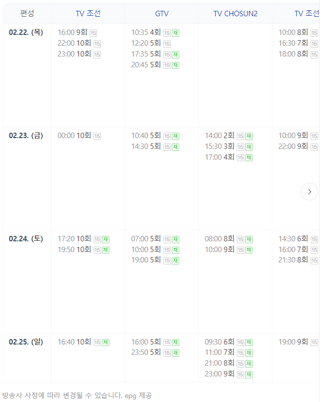 아래에서 실시간 재방송 편성표를 확인하시고 바로 시청하세요.